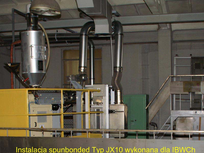 Linia do wytwarzania włóknin polipropylenowych metodą spod filiery (technologią melt-blown). Masa powierzchniowa wytwarzanej włókniny od 15 g/m2 do 250 g/m2, szerokość wstęgi od 30 mm do 1000 mm, długość do 200 m (w zależności od masy powierzchniowej włókniny).