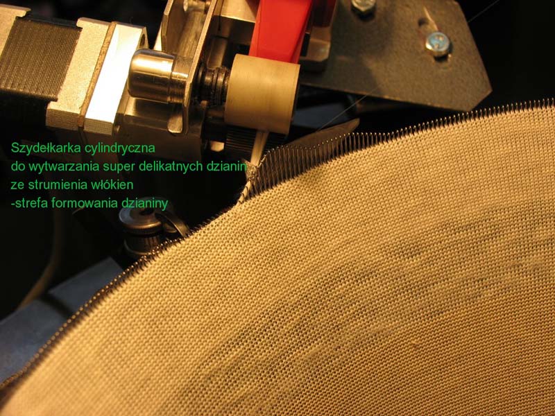 Szydełkarka cylindryczna do wytwarzania superdelikatnych tkanin ze strumienia włókien